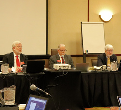 (From left to right) ARRL International Affairs Vice President Jay Bellows, K0QB; ARRL President Rick Roderick, K5UR, and Radio Amateurs of Canada President Glenn MacDonell, VE3XRA. [Photo courtesy of RAC]