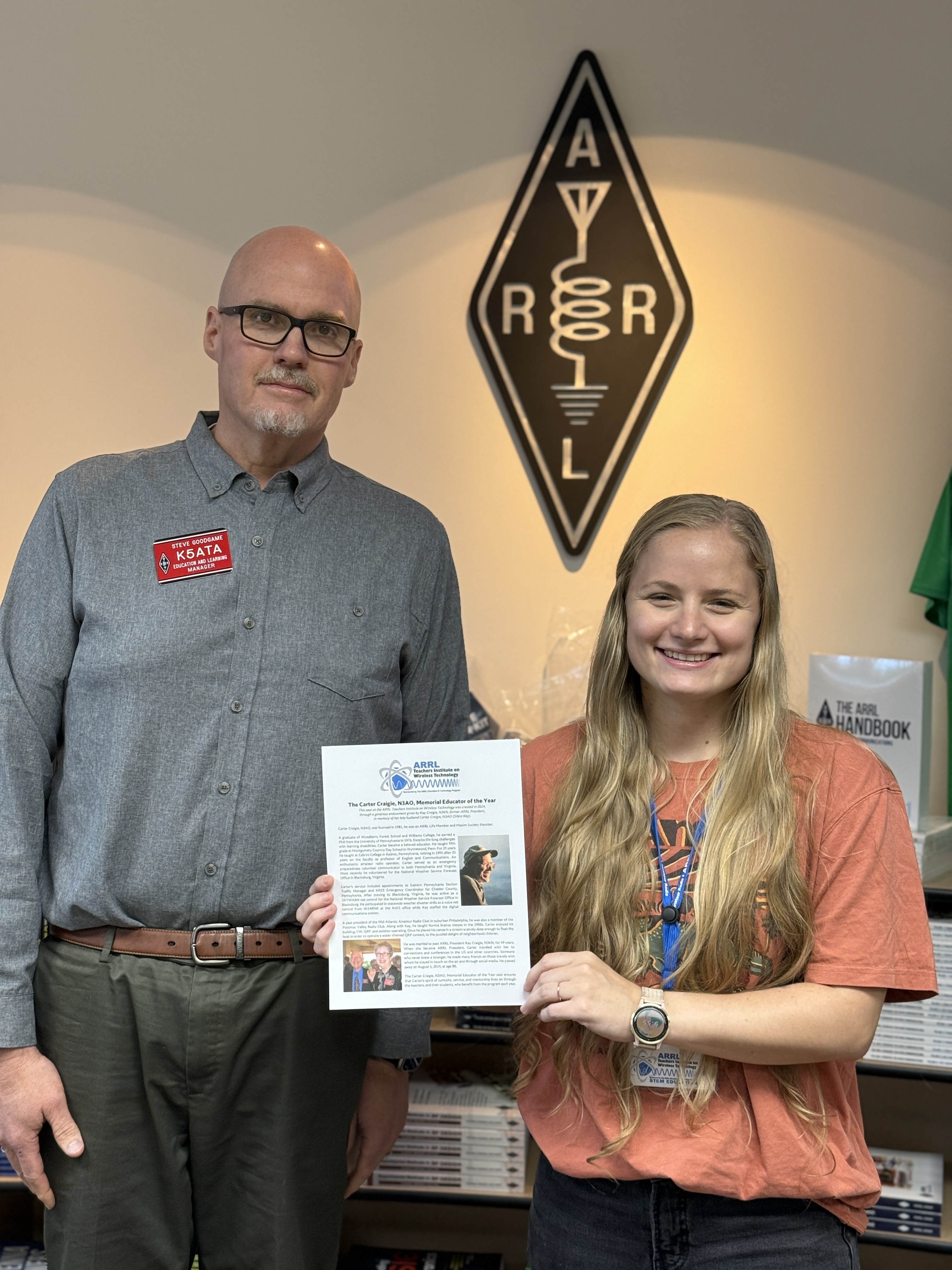The Carter Craigie, N3AO, Memorial Educator of the Year program funds a seat at the ARRL Teachers Institute on Wireless Technology. It was created in 2024 through a generous endowment given by former ARRL President Kay Craigie, N3KN, in memory of her late husband, Carter, who also was an avid radio amateur, first licensed in 1981.
