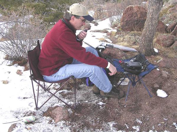 I hiked up the mountain twice, once on Saturday afternoon and returned again for Sunday afternoon. Activity was brisk enough to keep me busy working the radios, especially on Saturday. I worked a couple of guys on 147.42 MHz mountaintopping with FM HTs. I worked KC0GBK on Twin Sisters Peak (just east of Rocky Mountain National Park) on 144 MHz and 432 MHz. On Sunday, I worked Joe AB0YC on Ellingwood Point (14,042 feet in elevation in DM77) on 144 MHz. These folks were out climbing mountains and made it a point to see who they could work in the VHF contest. While it was cool at my operating location, Joe was experiencing much more severe conditions at that altitude.