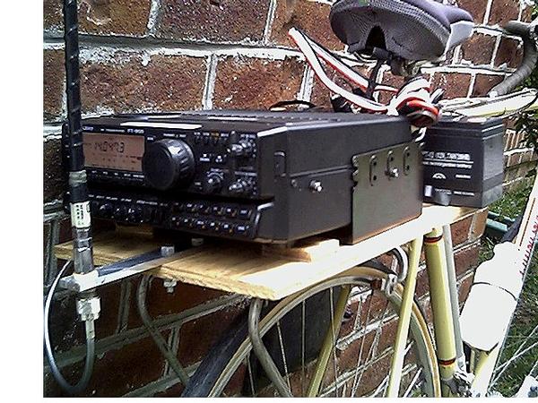 I put my Yaesu FT-900 with two small batteries on the rear luggage rack and a 40meter Hamstick antenna at the very end. A miniature straight key was easily strapped to my handlebars and I was ready to go on an ARRL Field Day Bicycle CW adventure.