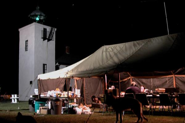 Holding the night shift down, Len Batttista, W2FX and Eric Kehl, KC2KJX operate high above Long Island Sound at the Horton's Point Light House at W2AMC's Field Day site. Len, an "old-timer" and Assistant Manager of the New York City - Long Island Section, joined forces with newly licensed Eric and helped rack-up the club's contact points.