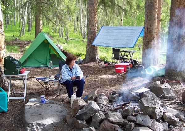 The camping trip was great. The contest? Eh, didn't make near enough contacts. Had to shut down a couple of times for typical Colorado summer/mountain T-storms. Great campsite, lousy radio site -- down in a bowl but out of the wind and the lightning. Grand Mesa National Forest near Grand Junction, CO. GPS said 10,231 feet. So did our aging hearts and lungs.