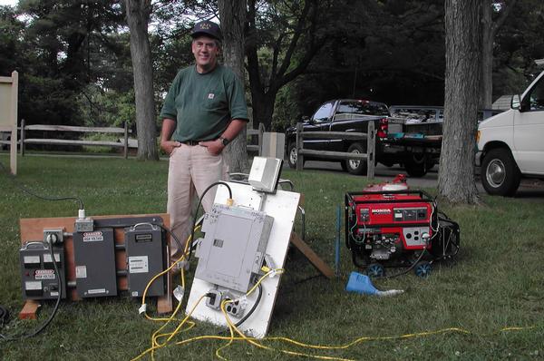 This club had the good fortune in having the safest and most complete Emergency Power plant, bar none. As many other amateur radio do, Jack Fisher, K2JX used his professional expertise to help out the club. As a licensed electrican he built a fully redundant generator system. Complete with Ground Fault Circuit Interrupter (GFCI, formally called GFI) this power plant had two generators that could be switched on and off line without any loss of power. This made it easy to service and allowed for the safe fueling of the gen sets without loss of operating time. GFCI made the possibility of electrical shock injuries most likely impossible.