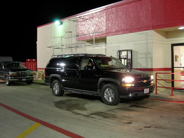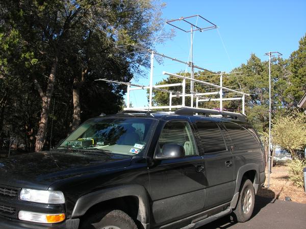 After moving the water pipe 6m squalo to the top of the Suburban's land-schooner mount, we attached the antennas and off we went to meet up with Steve N5AC and his OM (really!) Bob - W5TX in EM11.