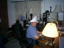 AARRG SCURVY BRASS POUNDERS! We welcomed 2007 with SKN and by having an all NAVY night on new years eve by watching "DOWN PERISCOPE". Since I am a former Navy RadioMan, I became the hapless radioman on the movie for the night, hence the pirate hat. I had to look up on the internet on how to make a paper pirate hat! I never learned how to make one as a kid, too busy learning CW! We had seveal new hams and not so new hams who wanted to participate in skn this year. The intrest in cw is mounting in our club. We used KA8SBI, Jeff (former Navy Quartermaster) station this year with a 80/40mtr trap dipole and Nye Viking Master straigt key. Our first contact was with KB4MSU (former sonarman and my cousin) 4 miles away in his log cabin setup.