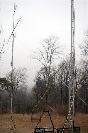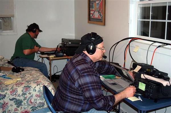 Overall, we were very pleased with our results: a reported score of 10,176 points. We had alot of fun, and even intoduced KE4MOH to the wonderful world of VHF contesting! Thankfully, we suffered no ice damage to any equipment. Plus, we had some great food, thanks to John and his "Cha cha cha chili" and homemade spaghetti! We've learned some valuable lessons, and can't wait for the next events: the ARRL