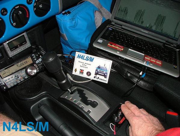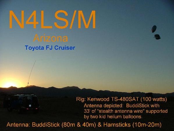 I had the opportunity to improve my mobile CW skills while driving and sitting in my driveway. My rig is a Kenwood TS480SAT (100 watts with built in tuner), mini-straight key, laptop with Get CW software, a BuddiStick portable vertical mounted on my trunk mount Diamond K400 plus an assortment of Hamsticks. 139 QSOs, 35 countries, Worked All Continents including 5 continents on 80 and 40 meters. I also added 33 of stealth antenna wire to my BuddiStick to improve my low band signal. I used two Scooby Doo balloons from Wal-mart to elevate the wire. I only operated this way at night and in my drive way to keep from embarrassing the ham radio communitysee photo below of my antenna being tested the night before the contest. From sitting in my drive way at 3 AM to driving in traffic on the interstate at 80 mph, this was a memorable DX CW contest. See you in the next contest, 73 Ned N4LS/M -- N4LS