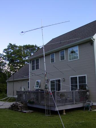 And I finally got the VHF / UHF beams up... Field Day style, on just the top section of Rohn 25 tied to the porch! The dogs bark at it when it rotates! ;-) -- W1TR