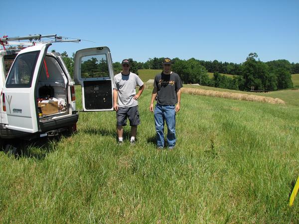 The first place we went was Gary, W8GTS's farm on a ridge top in EM89. Our elevation was about 1100', I forget exactly. We operated here from about 2000 sat to 0800 sun. Then we hit the sack.
