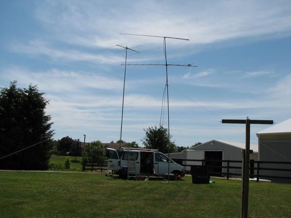 This contest was our first running the Vantenna as a team. We ran 6m, 2m, and 70cm. Our 6m rig was Jim's FT-857D at 100w and a 3 element beam up 30'. Our 2m and 70cm rig was my TS-2000, Teletec bricks (175w on 2m and 150w on 70cm), and 13ele on 2m at 30' and 21ele on 70cm at 25'. We ran off of a 2200w generator. It held up pretty well throughout the weekend, but when I would key up on 2m CW you could hear it chugging away with the code HI (roughly 35a - 25 brick and 10 rig).