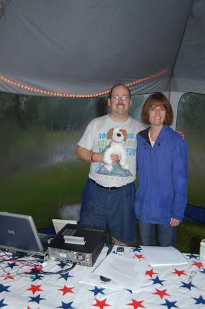 We didn't have any technical difficulties (for a change!), despite thunderstorms and deluging rain for most of the weekend. We shut-down temporarily during some intense lightning but we were determined to keep going. To control the flooding Patrick drove 20 miles to the store to pick up some tarps to cover our operations tent and, of course, the rain let up after he bought the tarps! We had several visitors, and would have had more if not for the inclement weather. Overall, we were happy with the event ... and we're putting in an early request for sunshine for 2008!