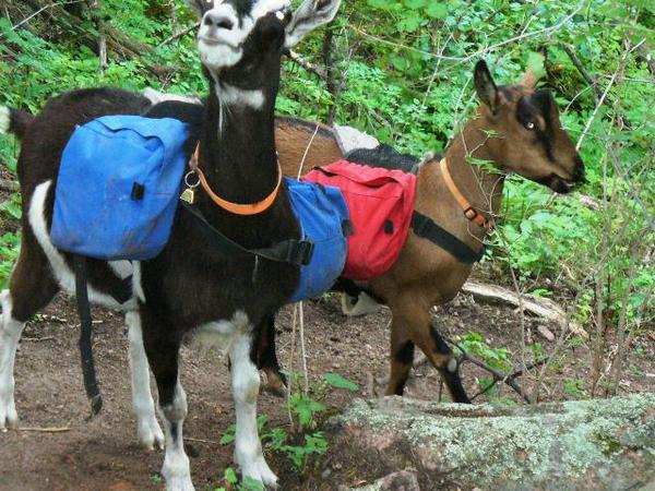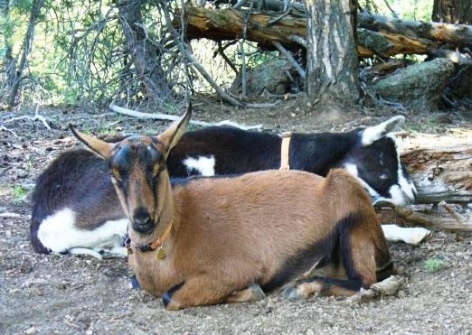 Rooster and Peanut my packgoats with their usual antics of knocking