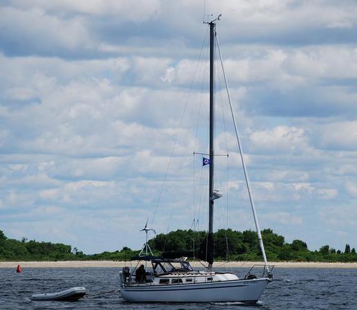 Brad KA1SVW and Steve KA1RCI purchased provisions for weekend and packed Bellerophon on Thursday night. They set sail from the Edgewood Yacht Club early on Friday afternoon June 22nd and watched the Blue Angles flying practice formations while sailing down to the NBARC field day site just off shore of Prudence Island outside of Potters Cove, RI. They arrived on station at their field day anchorage Friday evening and then Ernie N1SW arrived on station in Destiny early Saturday morning.