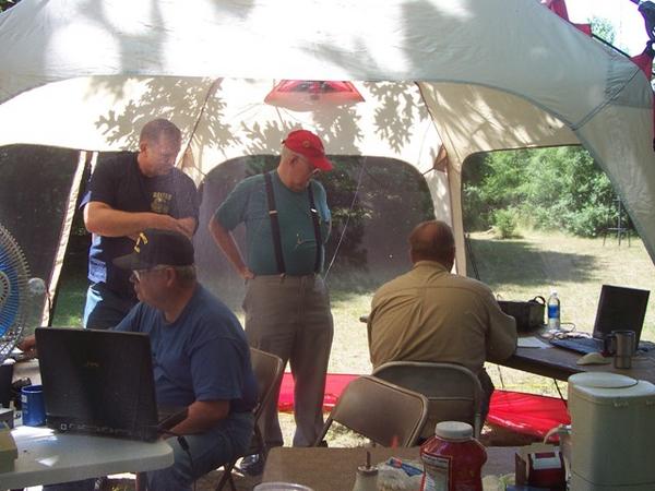 I don't think I slept but 2 hours, all I could do was think about the next day. Saturday came and we started everything up, and made some QSO's, ate some burgers, chatted with club members that came out. We had a ball, all in all we had over 25 people come out to our little field day. All of them are already talking about next year.