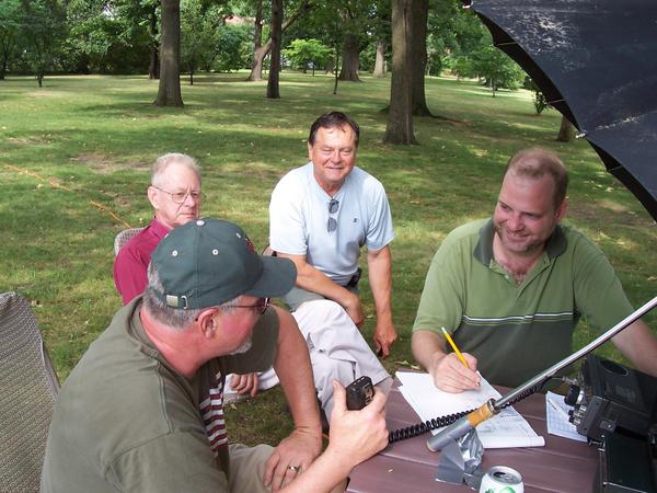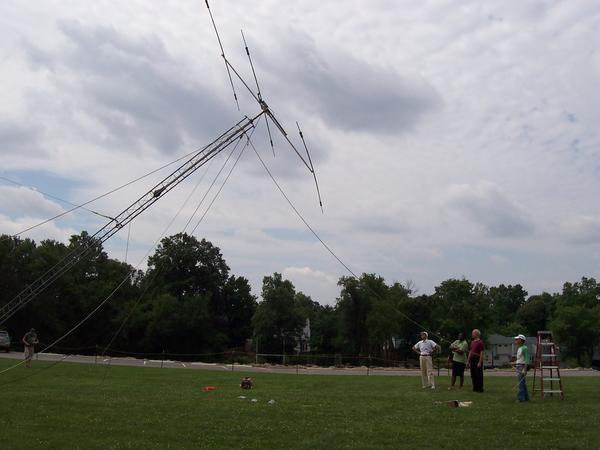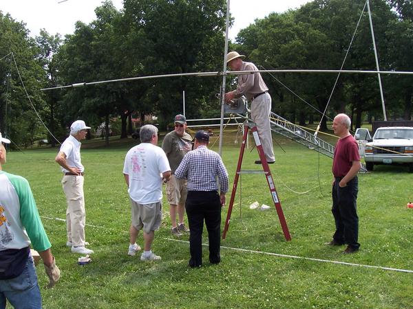 This was our 2nd Field Day outing in the St. Louis, MO suburb or Clayton and we were hoping for an improvement over our 2006 attempt. This year, we erected almost 40 ft. of Rohn 25G and crowned it with a TA-33. The tower and all accessories were generously lent to us by Sam K9SD. We also raised the height of our all-band doublet antenna to 30 feet which we tuned with an old Johnson Matchbox (worked great). We had a wonderful turnout with participants that included Bill WTR, Mike Ragouzis NBI, Mike Marx WBND, Ken Pfitzer WRO, Fred Simowitz KS, Paul Kulick KCCC, and Joe Winkelmann ABD.