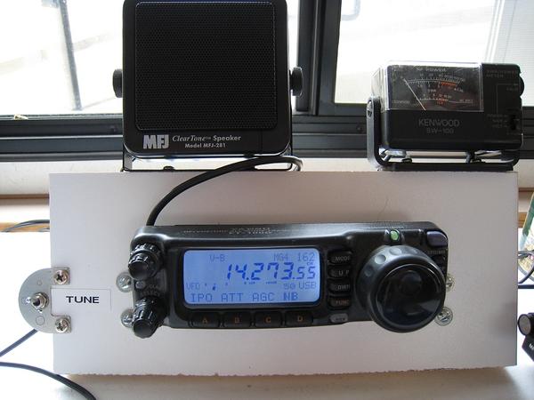 The antenna used was a 25 foot vertical fed with 3 feet of wire from a SGC-237 coupler. The radio was a FT-100D with extension cables for the microphone, speaker and control head. A FT-817ND and the old faithful TS-130S were spares. The FT-817 did come in handy getting the FT-100 audio levels set correctly for PSK-31 operation.