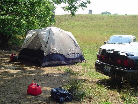 My twin brother and I operated as 1B from Clinton County, Kentucky. Our family owns a couple of farms near the small town of Albany in Southern Kentucky. Could we have been the only twins to operate as 1B in all of Field Day this year? I have to wonder about that. We get bonus points for that right? Despite a little rain on Saturday afternoon, we had great weather, and Field Day 2007 was a lot of fun. We used a simple 20 meter Hamstick mounted on a piece of sheet metal, with ground radials running off of it. We managed 77 contacts. I heard very little activity on 15 meters this year and nothing on 10 meters. 20 meters was pretty much the daytime band to be on. Camping out in the open cow pasture and doing Field Day is always a lot of fun, just watch where you step. I just can't wait until the bands come back to life in a few years and Field Day really gets hopping. 73, to all who worked us this year! -- KU4UV
