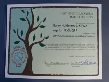 The Antenna Launching contest seemed to go over great. Barry Holderread,K4WX, from NoGaQRP was the winner. We had about 10 entries, and several spectators. A couple interesting launchers were displayed. Kirk Braunius, AI4PZ, brought his recently built air launcher, after we used it to install some of our own antennas, he entered the contest.