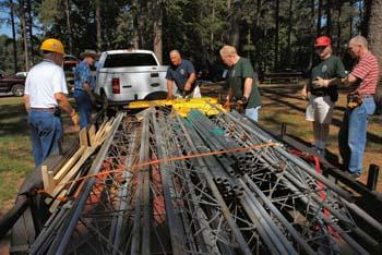 There were so many hams working hard to make this work, that I am shouldn't mention anyone by name. But, the chairman, Dick Sandberg, N9SXJ, did an outstanding job of getting us organized, getting us fed. David Adcock, KA4KKF, lead the antenna layout and installation process, Eddie Foust, WD4JEM, provided tower installation supervision, Scott Hartlage, KF4PWI, got us networked, Earl Whatley, AF4FG, operated the GOTA (Get on the AIR) station and fed us breakfast. The ground crew of about 25 folks worked hard in the dusty, hot and hot environment. The band captains had all their stations up and ready for contacts well before the 2:00 start.