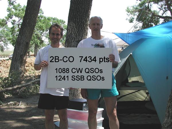 Larry (W0QE) and I operated 2B from Broomfield, Colorado using multiband dipoles hung between trees, a six meter dipole atop a mast, and a ground mounted vertical. This was my first Field Day and I had a lot of fun (and learned a lot as well). Thanks to Larry's careful planning, there were no surprises and we started on time. Larry operated CW the entire time from his tent and I ran phone from my tent. In spite of the heat, we were able to stay awake and put in a pretty decent effort. We're looking forward to doing it again next year!
