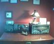 • Federal Tel/Mackay Radio FT-106 Ship radio console at KYVM/K6YVM with Gary, WA6KCP, tuning the Scott HF receiver.  The HF transmitter is above.  In the center is the MF transmitter, and battery controls; to the right is the antenna switch, station clock, and emergency MF receiver (crystal set).  The main MF receiver, and Auto Alarm units are just visible at the right.