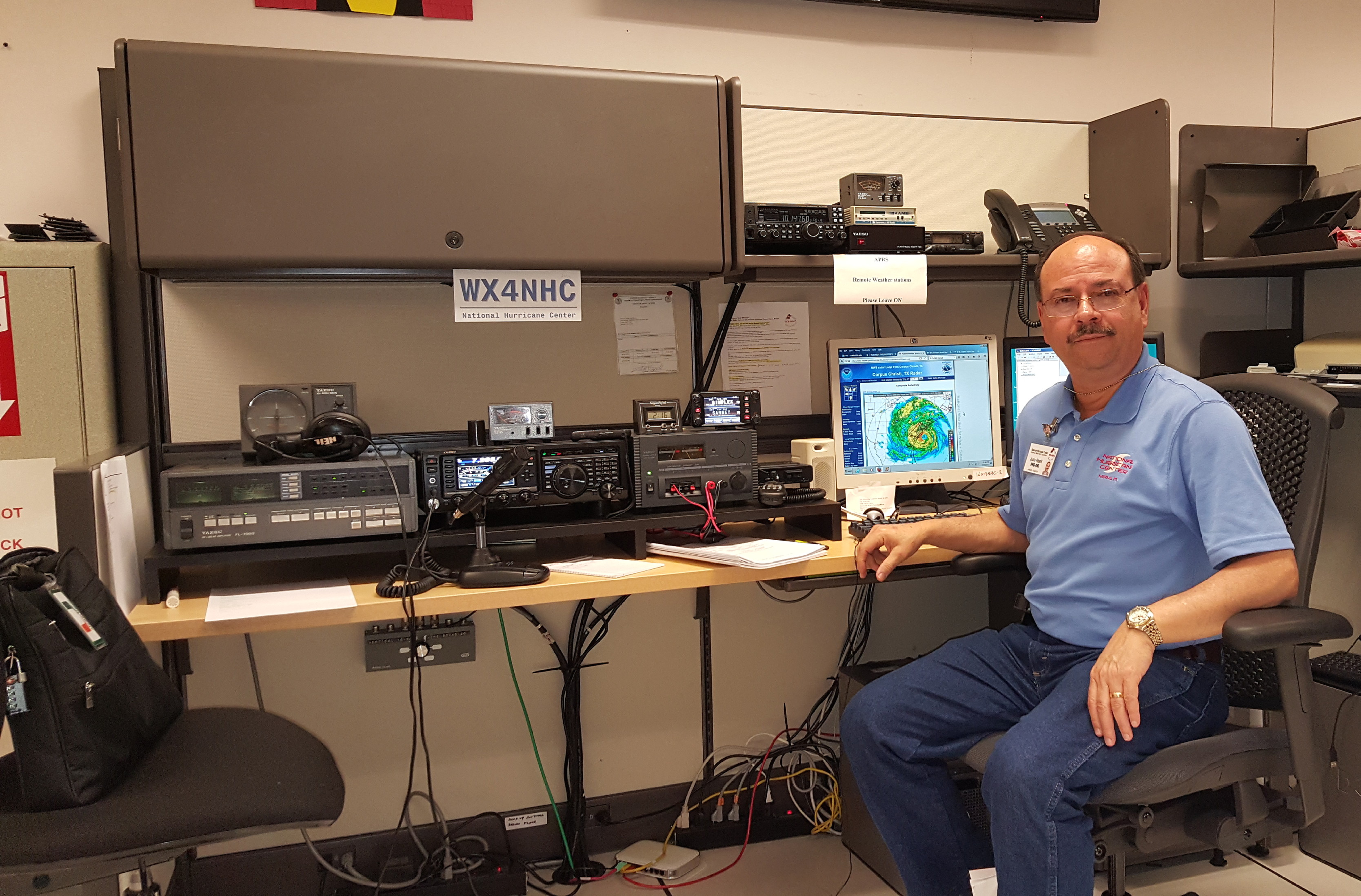 Julio Ripoll, WD4R, at the WX4NHC station, National Hurricane Center, Miami, Florida (photo courtesy WD4R)