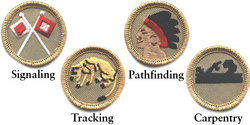 In keeping with Boy Scouts of America's centennial theme -- Celebrating the Adventure, Continuing the Journey -- four retired badges have been brought back for the group's 100th anniversary. The effective date for earning these new merit badges -- Carpentry (1911-1952), Tracking (formerly Stalking, 1911-1952), Pathfinding (1911-1952) and Signaling (formerly Signaler, 1910-1992) -- is April 1, 2010; requirements must be completed no later than December 31, 2010. The contemporary merit badges closely resemble the original designs of their counterparts, but with a gold border, immediately identifying it as a 2010 historic merit badge. These four historical merit badges may be used toward a Scout's rank advancement.
