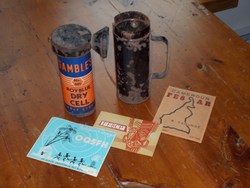 Which is older - the flashlight and dry cell or those delicious old QSLs? We don't know but that battery Dave NN1N and his dad found still pumps out a solid 1.5 V! (Photo by NØAX)