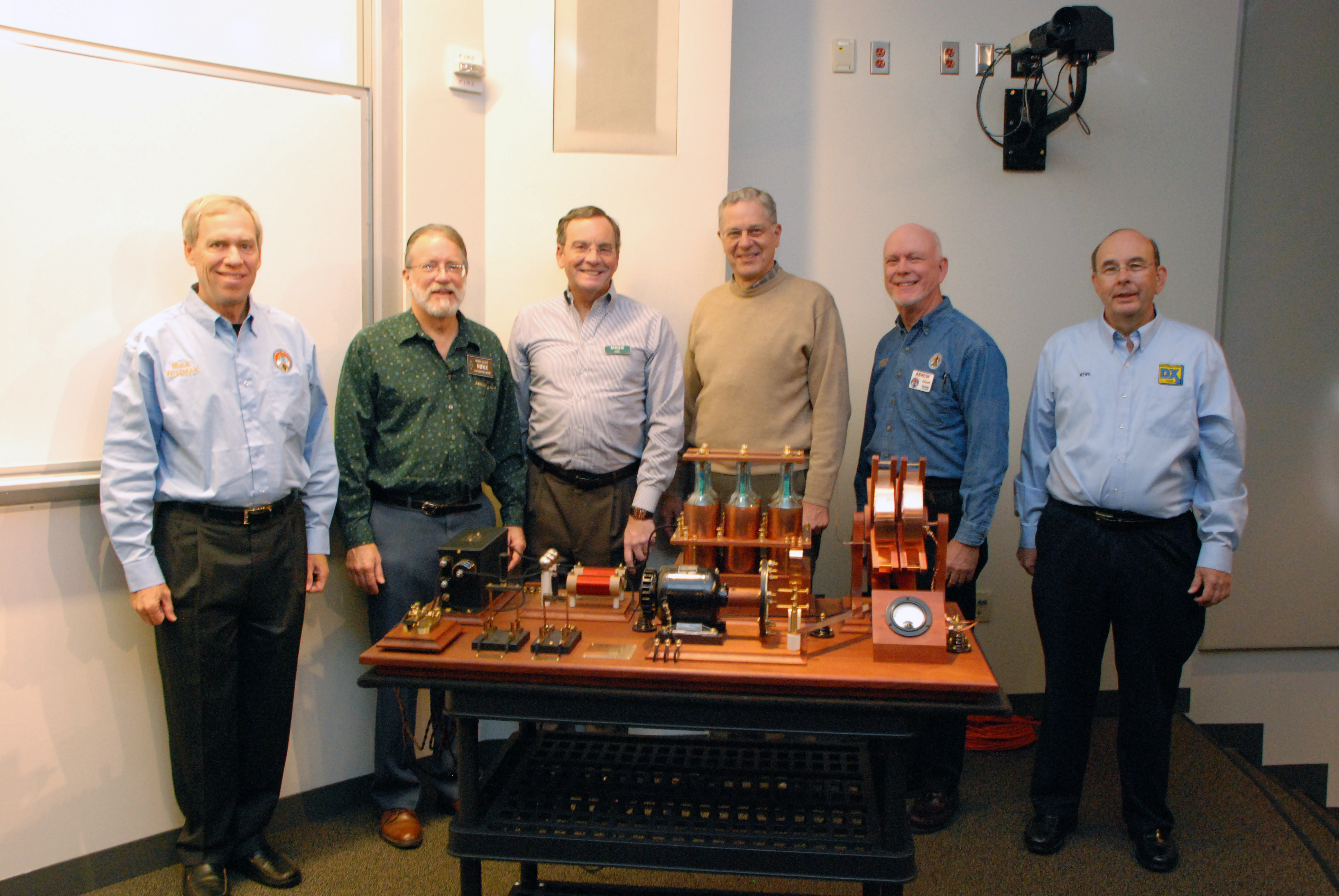 Hal Kennedy, N4GG, supplied the other historical bookend with a description and demonstration of his authentic recreation of a spark transmitter, known as “Blue Lightning.” Using modern-day jargon, Kennedy characterized the transmitter as a “Digital On-Off Keying, Spread-Spectrum” waveform. The transmitter is built completely of restored components, with the only exceptions being the use of modern-day glass bottles and aluminum foil for the Leyden jar charge-storage capacitor bank.