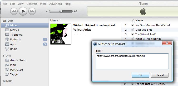 If you had previously subscribed to the ARRL Audio News via iTunes, you should not have to re-do these steps; episodes should appear in your podcast folder once you sync your device.