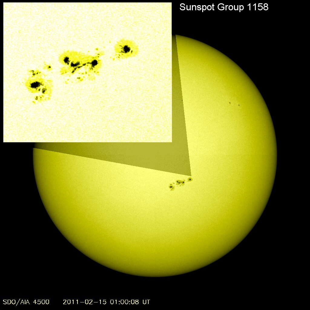 The source of this activity -- sunspot 1158 -- is growing rapidly (click here to watch a video of the sunspot’s progression over a 48 hour period). Sunspot 1158 is in the Sun’s southern hemisphere, which has been lagging behind the northern hemisphere in activity for Solar Cycle 24. This active region is now more than 100,000 km wide, with at least a dozen Earth-sized dark cores in the group. More Earth-directed eruptions are likely in the hours ahead.