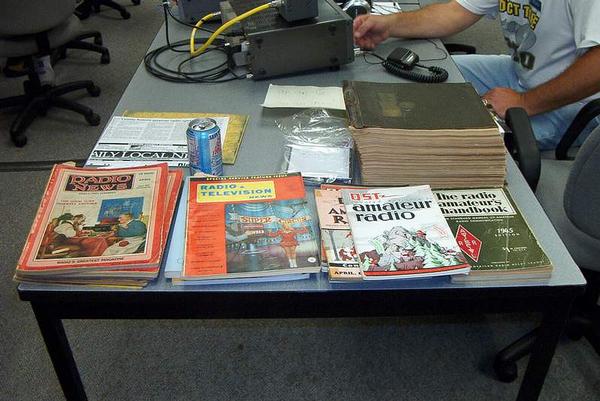 Many "Thanx" to VE1FO for our satellite contact with the crew in Halifax. Using our manually-operated "Deep Space Howitzer" on the low-flying FM birds turned out to be quite a challenge. Next year, it's 'egg-beaters' and 'arrows'. The APRS and ATV demonstrations were also well received by the county officials. Light reading was provided; including 1920s Radio News, 1930s QSTs and Gernsback mags, a 1945 ARRL Handbook, and a correspondence course from the Nat'l. Radio and Television Institute c. 1932-1935!~!~!