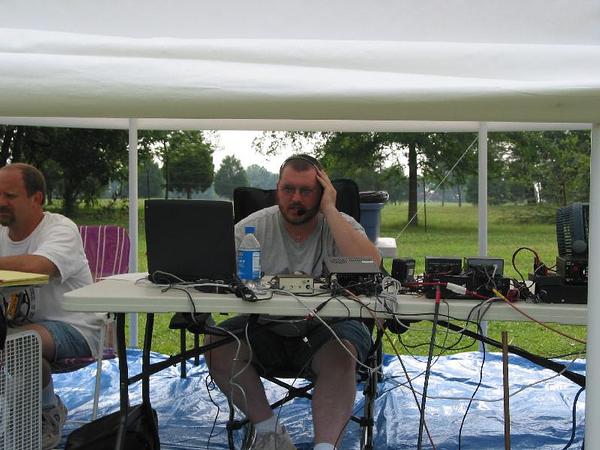 Jesse (KC0QOP) has been working with us for the past 2 Field Days, but this year he wanted to operate on his own. He passed his Technician test in August of 2003 and his General and CW tests in May of this year. Jesse had made a few contacts during the week leading up to Field Day, but really got his feet wet running the GOTA station. Jesse made 150 contacts during the weekend (6m and GOTA). We are all very proud of his accomplishments and look forward to him helping us out again next year.