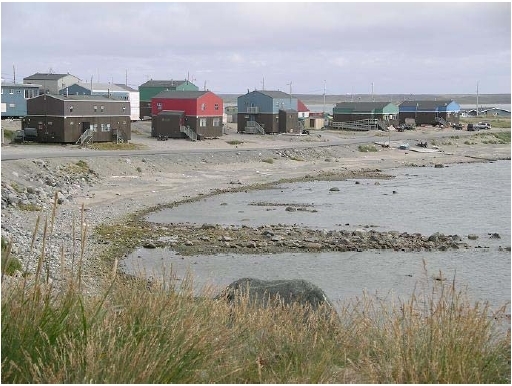 A couple of stores provided a good selection of groceries, albeit three to five times more expensive than back home. After shopping, I walked around the community. Lined up in a systematic, predesigned pattern, houses are elevated because of the permafrost, having wood siding topped off in bright colors (see Figure 1). Canoes and snowmobiles dot the properties and ATVs roar up and down the paved roads.