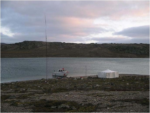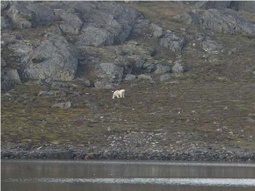 The crew awoke and started to pack. I was told that we would leave soon, but that I could continue on the air for a while. The best propagation to Europe on 30 meters was the previous night and I wanted to test it this morning with Asia. The JA pileup strengthened just after 6 AM (1000Z). I was in contact with JA1SKE when a polar bear appeared on the opposite side of the bay.