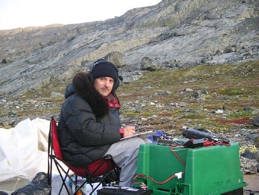 The other guys found polar bear tracks 1.5 km south of our camp. We had to be careful when leaving the tent. Moreover, Qalingo loaded his rifle and kept it by his sleeping bag. That evening, the crew listened for quite a while to the SSB and CW pileups. They agreed that a polar bear would best be scared by yelling “CQ, CQ!” It was no joke, as this reminded them of “seku” — “ice” in Inuktitut. That night, as I went out to switch the antenna from band to band, I looked carefully around the tent to avoid any surprise encounter.