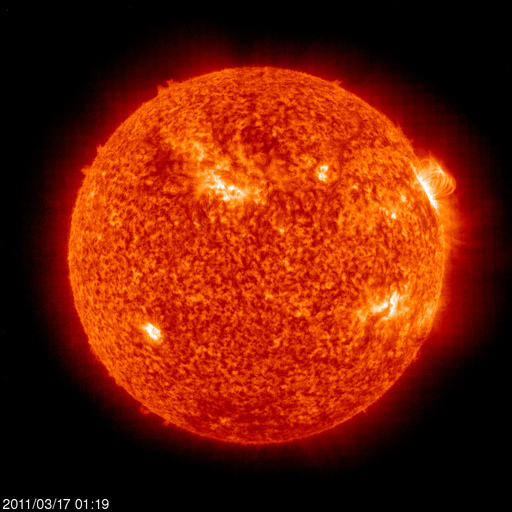 In a brief report for this week’s ARRL Letter, we said that average flux was off nearly 25 points to 114.5. The average changed because the observatory in Penticton reported the solar flux for Wednesday, March 16 as 104.9, but later it was adjusted down to 95 by NOAA’s Space Weather Prediction Center. This happens sometimes when energy from a Coronal Mass Ejection overwhelms the 2.8 GHz (10.7 cm wavelength) receiver at the Dominion Radio Astrophysical Observatory in Penticton, British Columbia. A good example was on March 7, 2011 when the noon solar flux reading was 938.6. This was an obvious outlier, caused by a solar flare out of sunspot group 1166 that was positioned near optimal geoeffectiveness. As a result, the official number was adjusted down to 122. But Wednesday’s number didn’t seem so obviously out of line, and the timing didn’t seem to line up with the only event I knew of, an eruption from sunspot group 1169, which was nearly over the solar horizon.