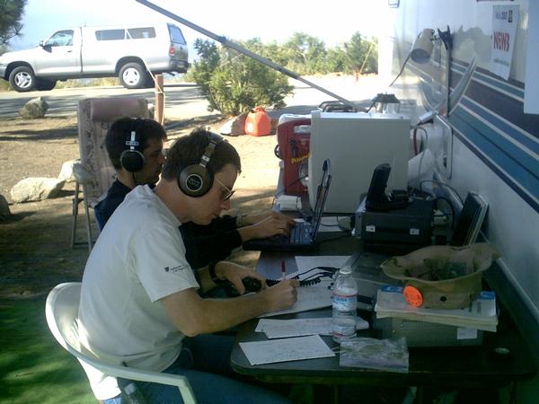 Operating 2A at Dixon Lake Campground on a hill with a beautiful view of Escondido CA. We had 3 monoband yagis mounted on towers on 10, 15 and 20 meters which peformed flawlessly although with little 10 M progagation the 10 Meter was hardly used. John KG6DVE once again cooked up some of the finest Field Day cuisine to be served anywhere. Danny AE6MB and Thomas KG6INL did a great job attempting some Sattelite QSO,s. Willie N8WP and his wife Cheryl KG6KTT spent hours on the GOTA station helping new hams get those 1st Field Day contacts. Due to a misunderstanding with one on the park rangers our Emergency Drill became a real emergency drill when the ranger demanded we shut off all emergency generaters at 1 AM in the morning. We were quickly back on the air after a quick scramble to acquire some battery power and to back up all our logging programs. It was great to see so many people work together and have such a great time. Just wait till next year!!! -- KK6TV