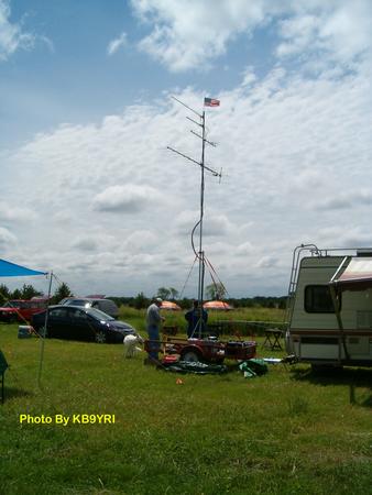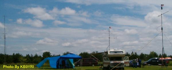 Our setup was as follows: 50 Mhz was using an Icom 756ProII into a stacked pair of home brewed moxons at 35 feet. 144 Mhz used an Icom 746 into a TE Systems 375 Watt amp and then into a 13B2 at 30 Feet. The 222 Mhz station was an Icom 7000 driving a Downeast Micro wave 222 transverter with 120 Mirage amp into a 15 element boomer at 30 foot. 432 was using an Icom 475 into a RFC 110 watt amp into a K1FO beam. 903 and 1296 were Downeast transverters run by an FT817, the 903 antenna was an 11 element and the 1296 was a 22 element on the same tower with 222. Our 10 Ghz station was a Downeast transverter driven by an Icom 290a into a dish at 10 foot running about 1.5 watts. Our entire operation was housed in a motor home and screened tent. We were running two 5 KW generators to keep things going.