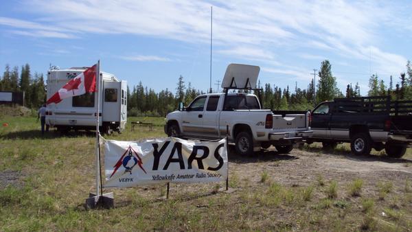 This year we tried out a 45 ft ex-US army fibreglass mast and it worked very well. VE8RT constructed a delta loop and used it to operate the CW station using an FT-1000MP. We also used an FT-857 on a G5RV for PSK contacts. A vertical 6 m antenna was hooked up to an FT-706, but we missed any 6m openings during the weekend. About half of our contacts were via PSK, 35% by CW and 10% by SSB. There are definite advantages to PSK and CW operating in the north and our club is now oriented towards this as the primary operating mode.