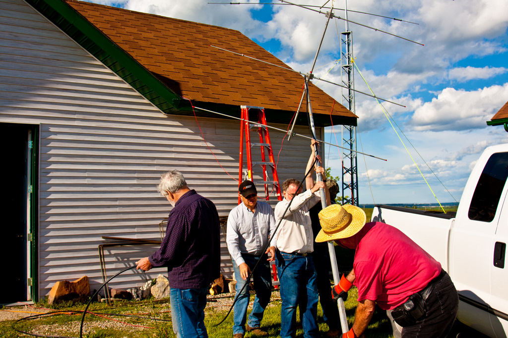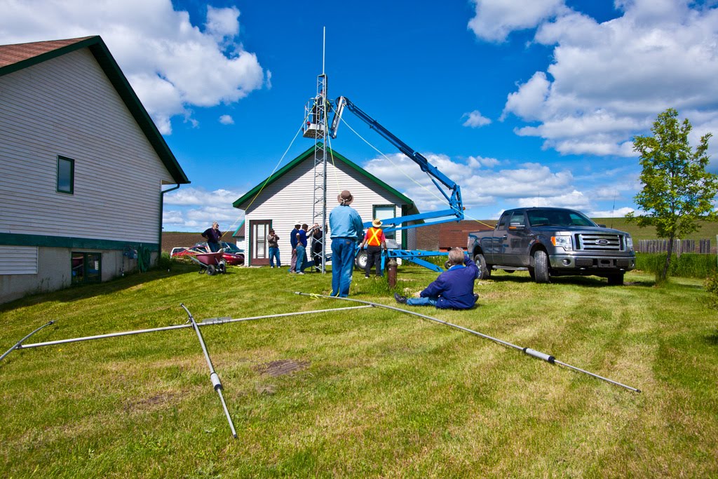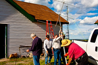 Once I had my pickup parked and had a quick look around, it was time for breakfast. Once we had filled up on a wonderful breakfast, thanks to Scott and Christina, it was time for a meeting to plan strategy in preparation for the setting up of antennas. With the meeting out of the way, and everyone assigned their duties, the guys began setting up antennas. For those of you not up to speed as to the objective of field day, it is to work as many stations as possible on any and all amateur bands (excluding the 60, 30, 17, and 12-meter bands) and to learn to operate in abnormal situations in less than optimal conditions. ARRL Field Day is the single most popular on-the-air event held annually in the US and Canada. Each year over 35,000 amateurs gather with their clubs, friends or simply by themselves to operate. It is an excellent opportunity to demonstrate Amateur Radio to local elected community leaders, key individuals with the organizations that Amateur Radio might serve in an emergency, as well as the general public.