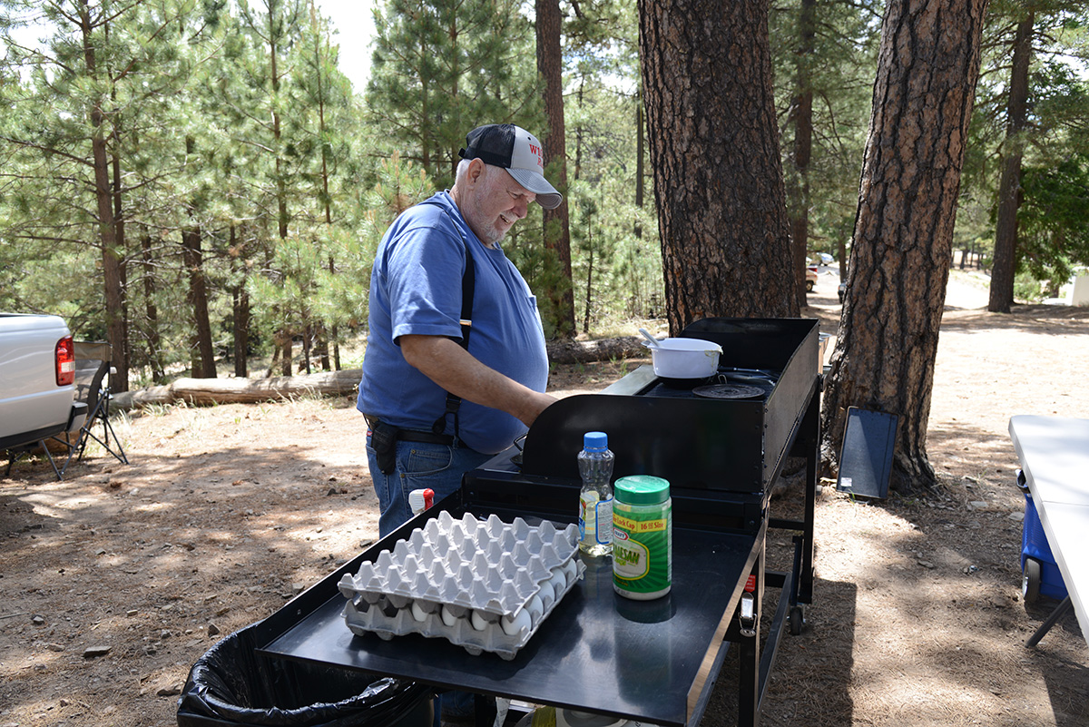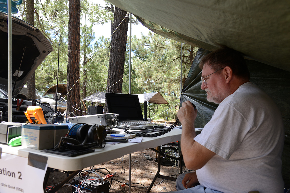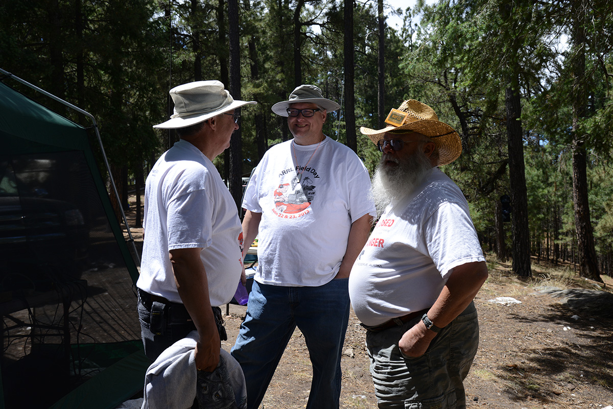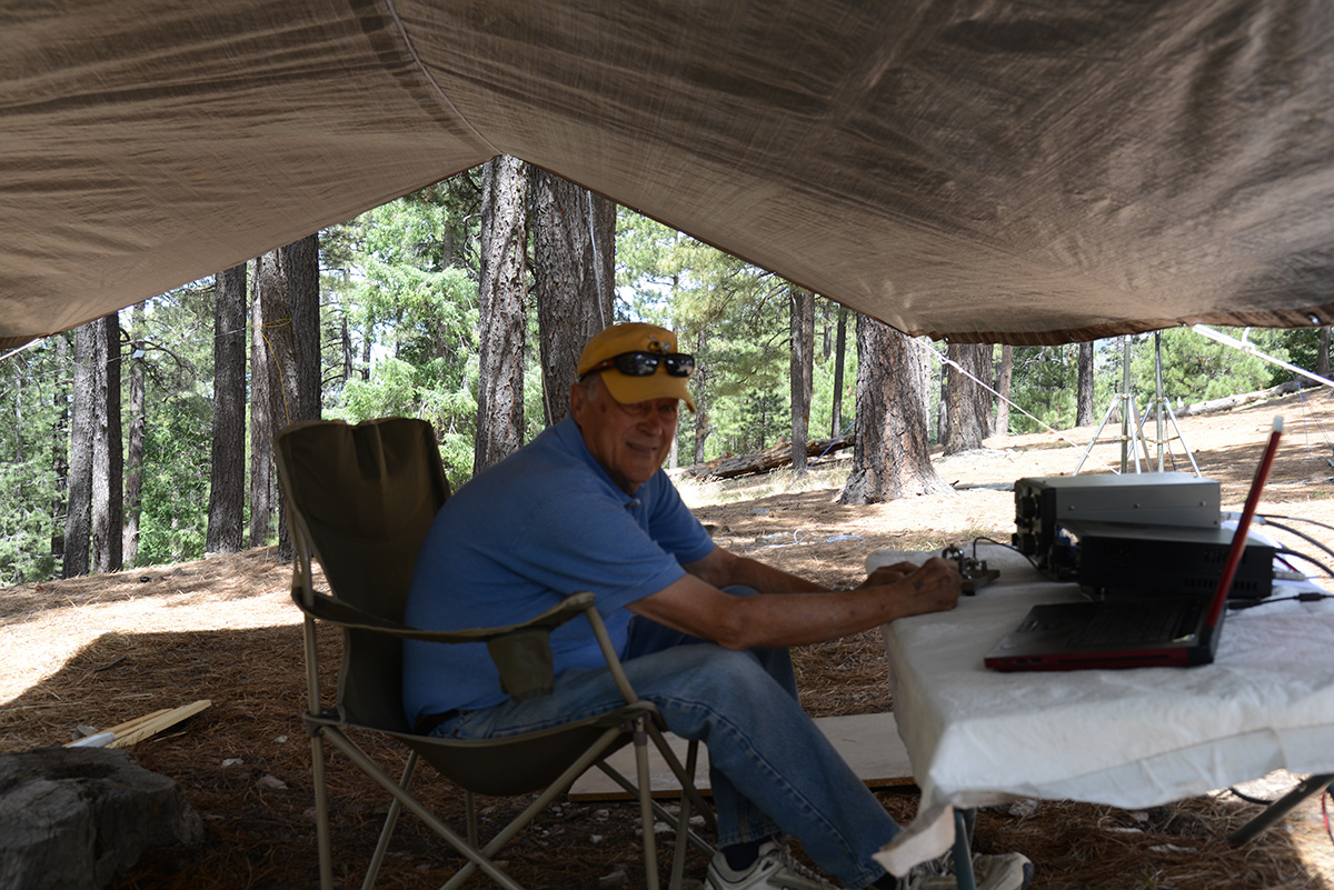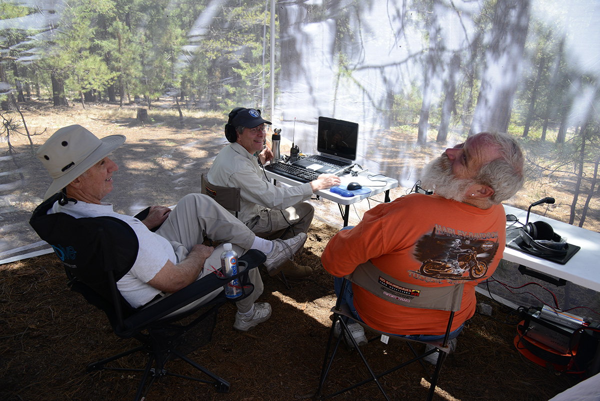 Catalina Radio Club and the Radio Society of Tucson held a joint Field Day in the tall pines of Mount Bigelow, in the Coronado National Forest. We had well-laid plans starting back in April for a Field Day with our usual generators at our usual location. We also planned a secondary Field Day location, to activate the RMS 811R Emergency Communications Center, which we would execute in case fire restrictions require that we stay in the Tucson Valley. With a week to go until Field Day, we were encouraged by the existing Stage I Fire Restrictions and a good soaking rain at the start of our Monsoon season. On Wednesday, 6/19, 3 days before the start of Field Day and THE day prior to some of our group going up the mountain for campsites, Coronado National Forest issued Stage II Fire Restrictions, disallowing use of generators in the National Forest. Immediately we modified our original Field Day plans with solar arrays and batteries instead of our usual generators. We suffered the cold evenings and nights up on the mountain while others enjoyed the 100+deg heat down in the valley.